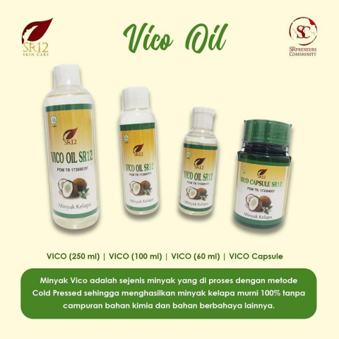 Minyak kelapa murni kualitas terbaik, memiliki 3 ukuran : 60ml 33.000, 100ml 43.000, 250ml 83.000 dan VCo Oil Kapsul isi 60 kapsul 55.000 Manfaat VCo Oil : Mengobati diabetes, menekan pertumbuhan bakteri dan virus, meningkatkan kekebalan tubuh, sebagai anti aging alami, antioksidan, mengobati jerawat, melembabkan kulit, anti iritasi, membakar lemak tubuh